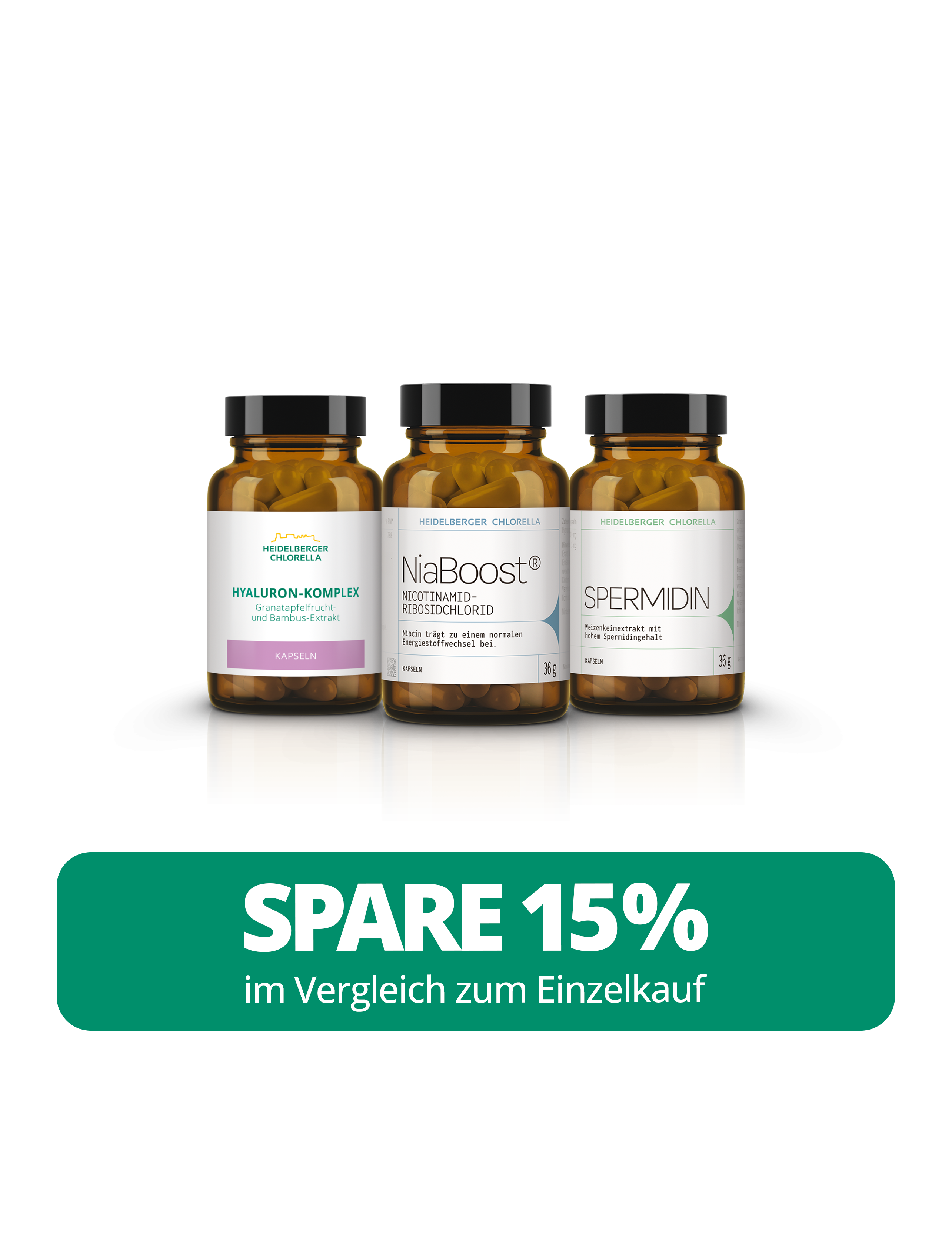 Mit zunehmendem Lebensalter wächst der Wunsch nach innerer Balance und langfristigem Wohlbefinden. Das Healthy Aging Bundle wurde dafür entwickelt, den Körper bei seinen natürlichen Funktionen zu unterstützen. Spermidin, Niacin und Hyaluronsäure gehören zu den Stoffen, die der Körper selbst nutzt, um Zellen zu erneuern, Hautstrukturen aufzubauen und Stoffwechselprozesse aufrechtzuerhalten. Dieses Bundle kombiniert sie in einer Form, die den Organismus im Alltag begleitet. Die Produkte eignen sich für alle, die ihre täglichen Routinen bewusst gestalten und ihre körpereigenen Prozesse langfristig unterstützen möchten.