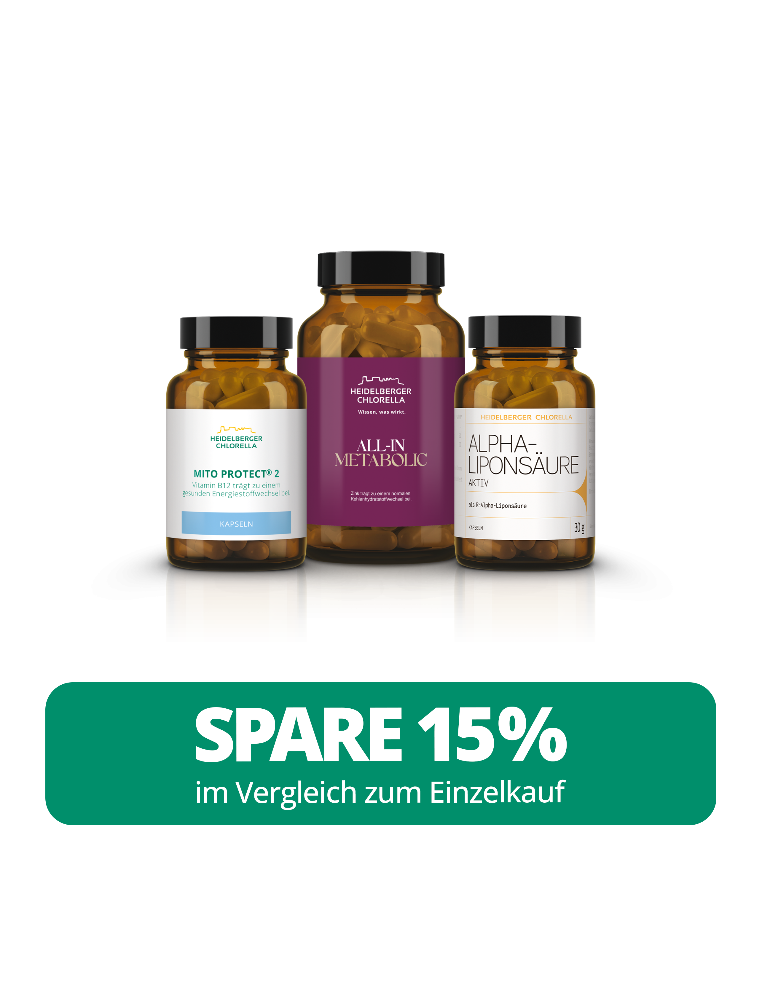 Vitamine, Mineralstoffe und zentrale Co-Faktoren spielen eine wichtige Rolle bei der Energiegewinnung der Zellen. In diesem Bundle ergänzen sich Alpha-Liponsäure und ein breit aufgestelltes Pflanzenstoffprofil zu einer durchdachten Formulierung. Die Kombination eignet sich besonders in Zeiten, in denen die Ernährung gezielt ergänzt werden soll, um den normalen Energiestoffwechsel zu begleiten und einen normalen Blutzuckerspiegel zu unterstützen.